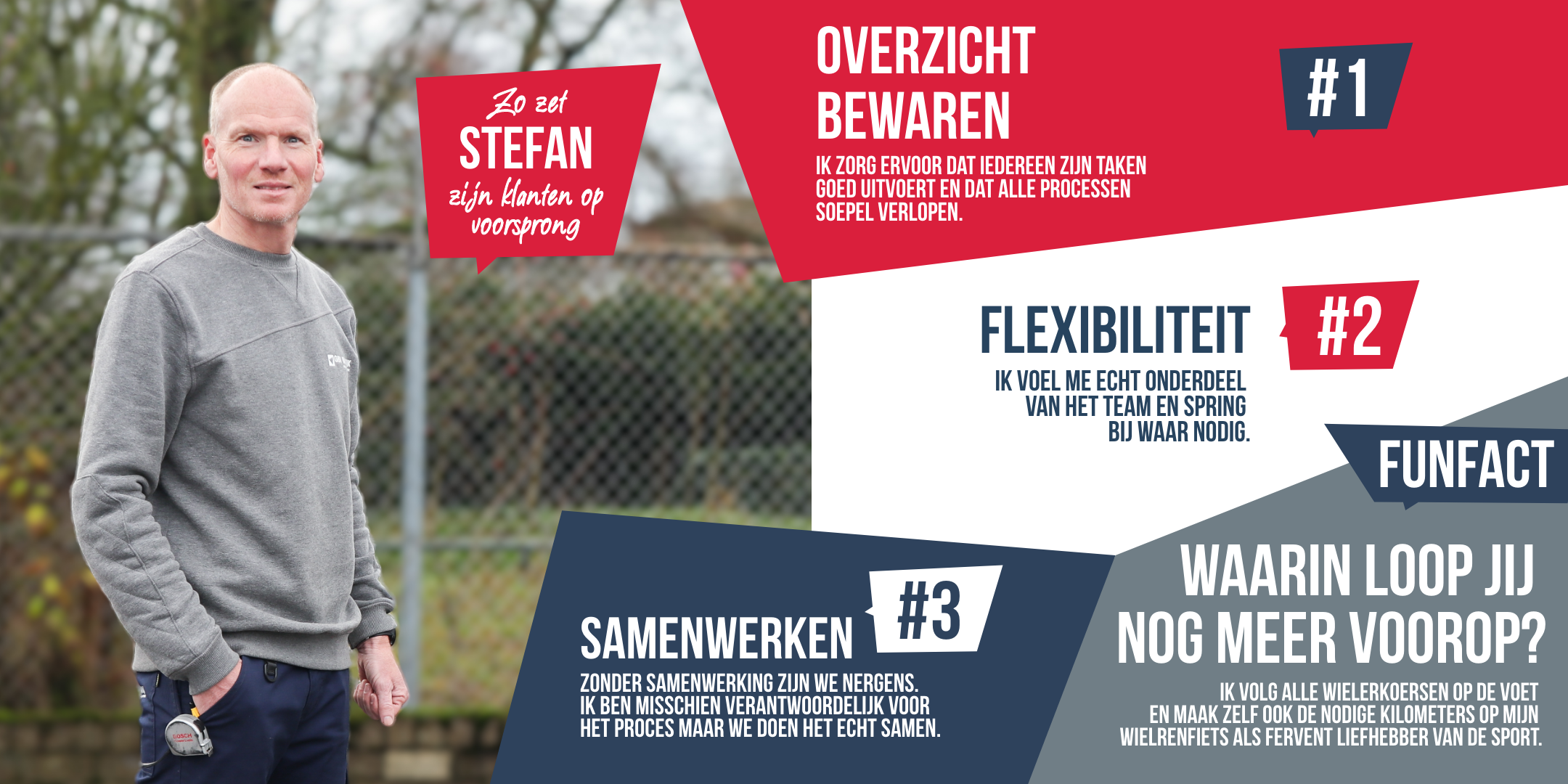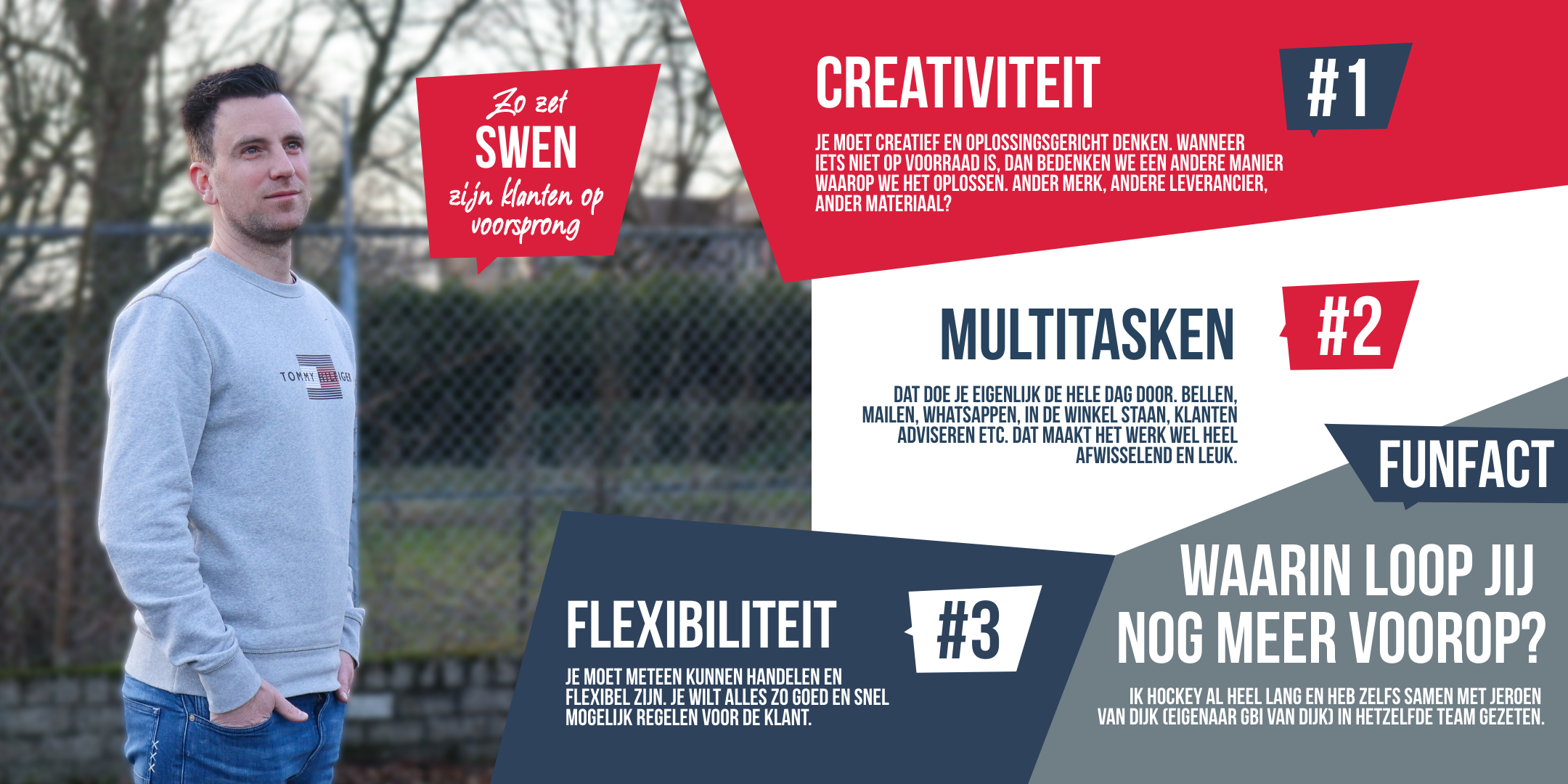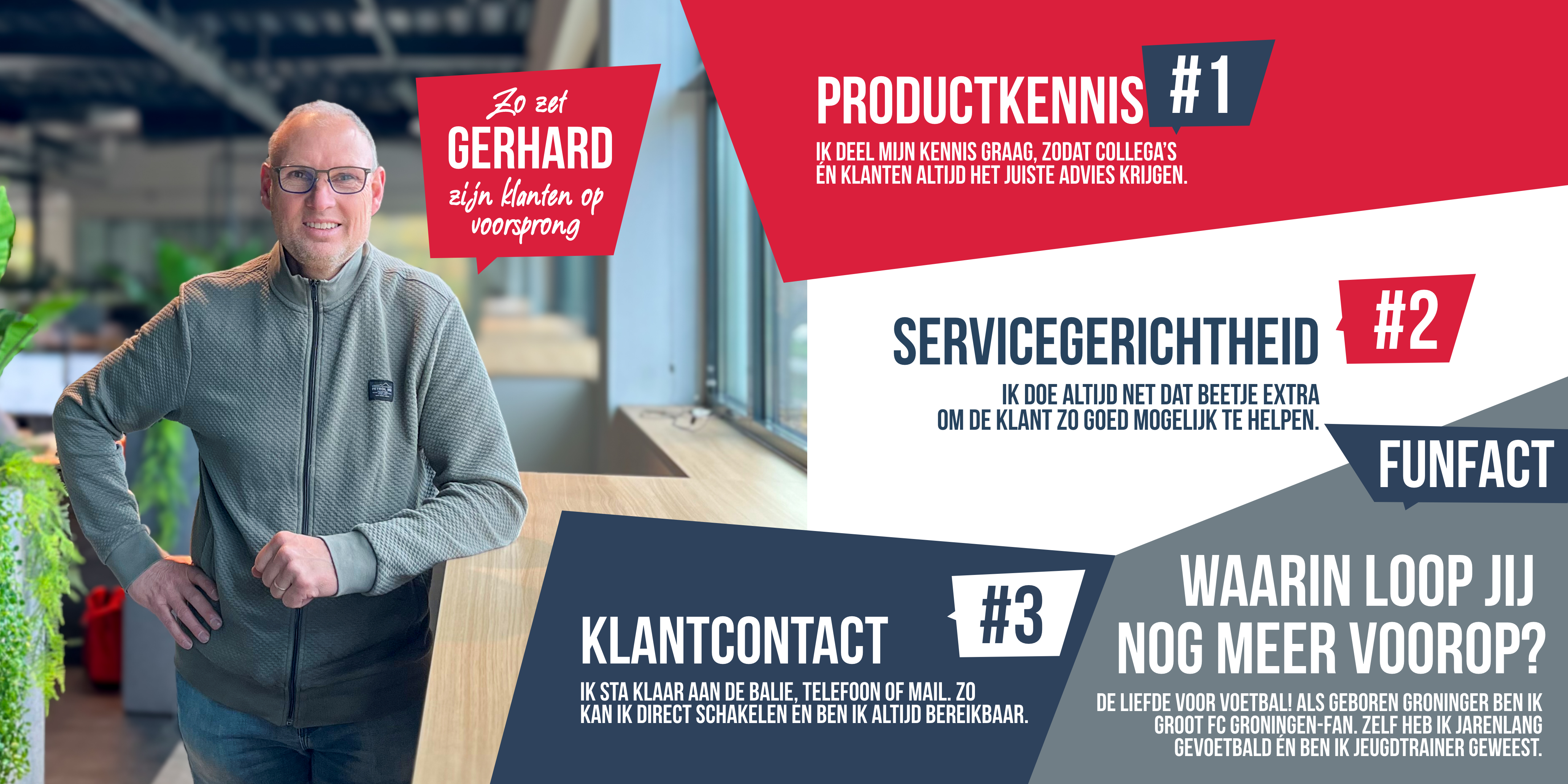 Maak kennis met ons team. Stuk voor stuk gedreven en betrokken vakmensen die altijd voor je klaarstaan. Door jarenlange ervaring heeft iedereen binnen ons team zo zijn/haar expertises opgebouwd. Zo zetten we je als klant op voorsprong en kunnen we je snel op weg helpen.